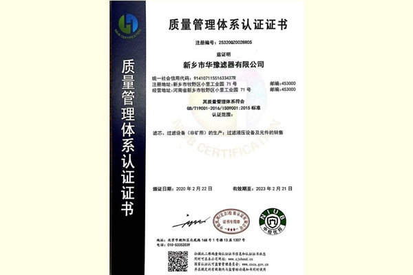 • 新鄉(xiāng)市華豫集團質(zhì)量管理體系認證書