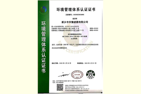 • 環(huán)境管理體系證書