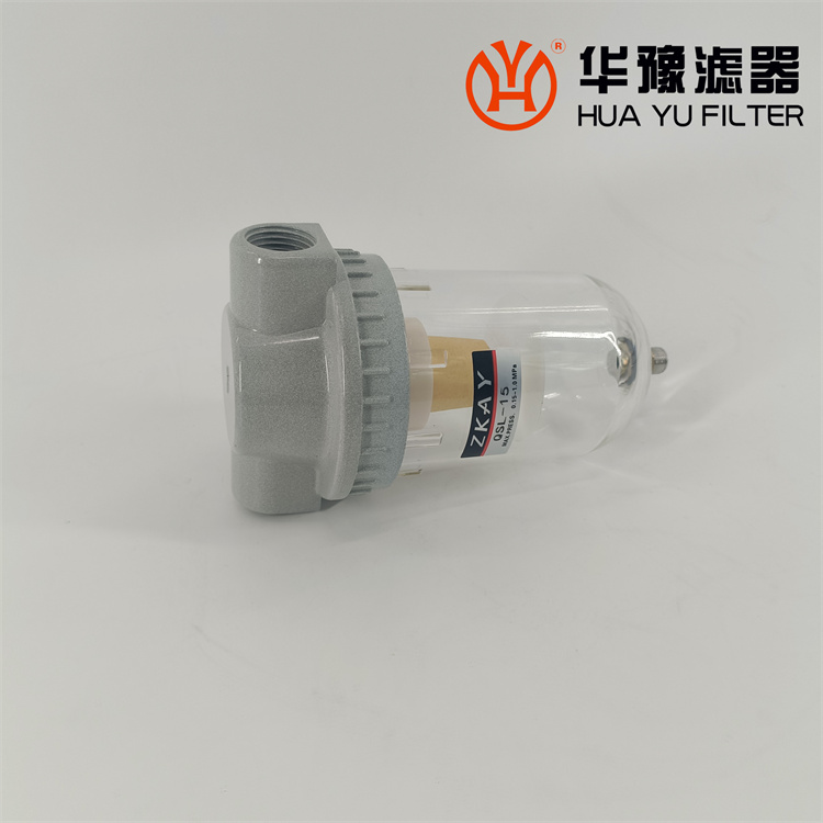 QSL、QSLd (帶保護罩)系列空氣過濾器一、特點:1、結構簡單,應用廣泛。2、采用旋風葉片分離水分及雜質。不銹鋼微孔截留塵埃。3、存水杯采用透明的聚碳酸脂制成,不僅能滿足耐壓要求,并能清晰地觀察積存的水量。4、金屬保護罩可保護存水杯免受外力撞擊導致破碎。